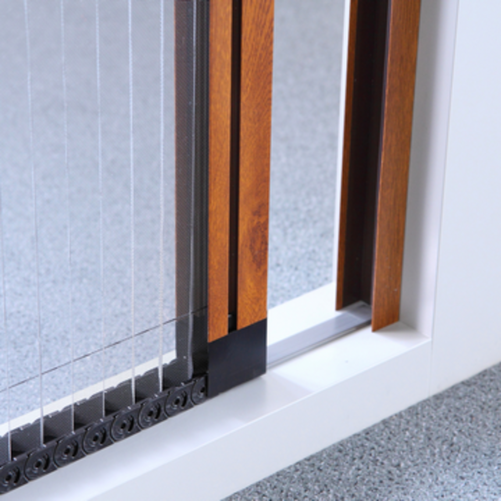Síť je vedená systémem pevně napnutých šňůr značky Dyneema®. Napínání šňůr zabezpečují pružiny zabudované ve vodících lištách. Přesným nastavením vodících šňůr zůstává posuvný profil v libovolné poloze.